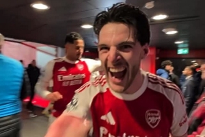 阿森纳官方更新社媒动态,晒出赛后球员通道的视频,枪手球员们在回到更衣室的路上庆祝胜利。
