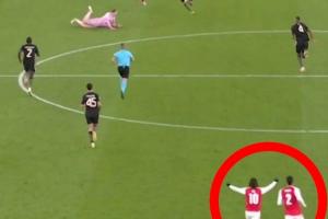 回看镜头,诺伊尔扑空瞬间,他的位置已经接近中圈。在马丁内利拿到球之后,后场的埃泽直接就开始庆祝了!