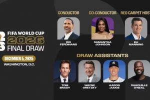 2026年世界杯抽签仪式将于2025年12月5日在华盛顿特区约翰·F·肯尼迪表演艺术中心举行。