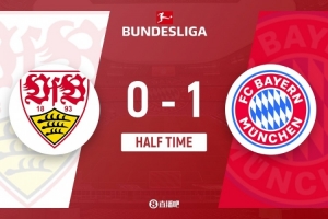 伤停补时8分钟。上半场比赛结束,拜仁1-0斯图加特。