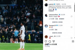 替补登场表现不俗,恩德里克社媒晒照:我们将继续全力以赴地战斗