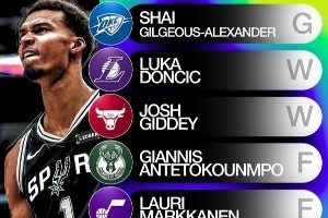 其中世界队为:亚历山大、东契奇、吉迪、字母哥、马尔卡宁、约基奇、文班亚马、申京。